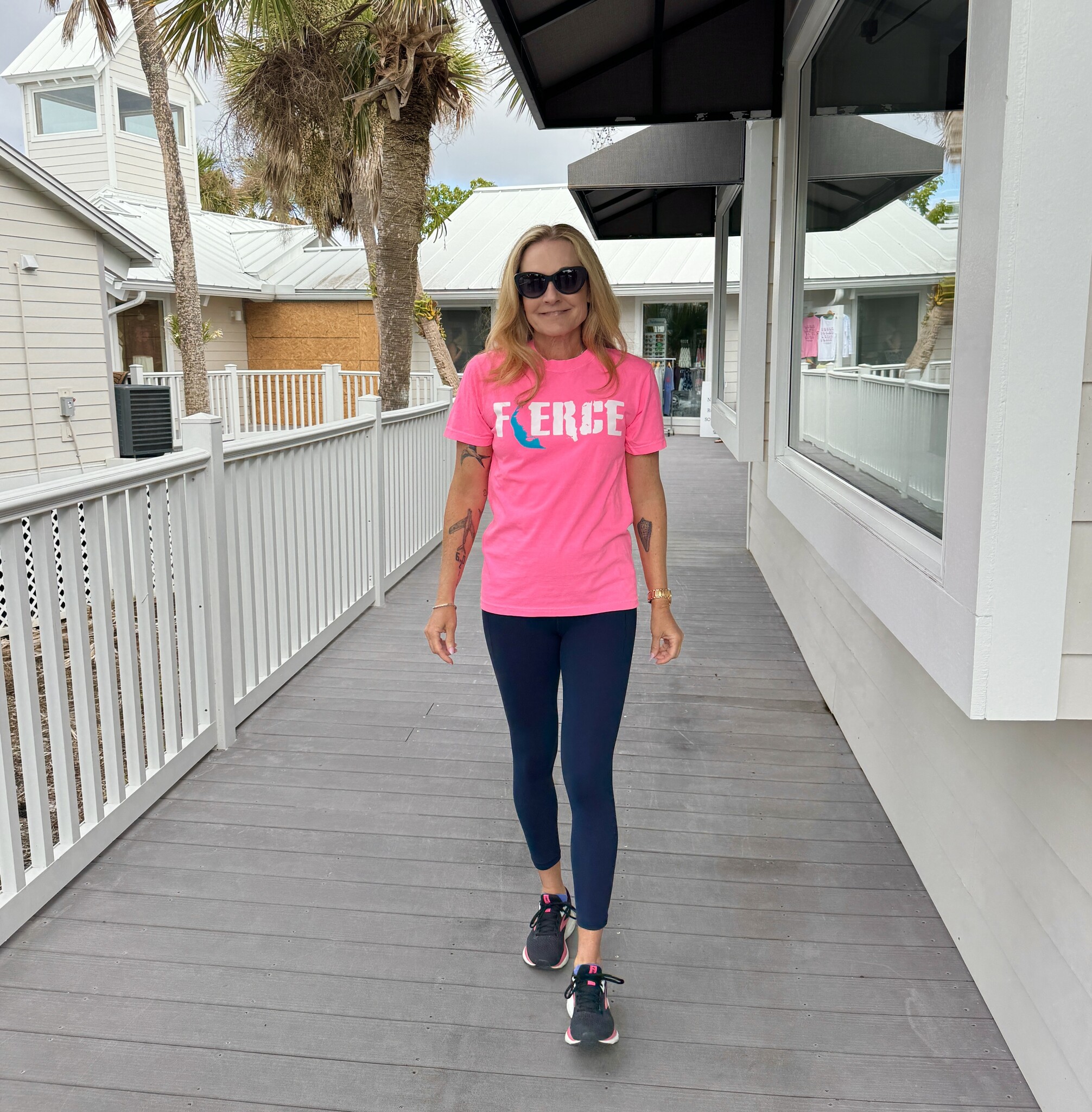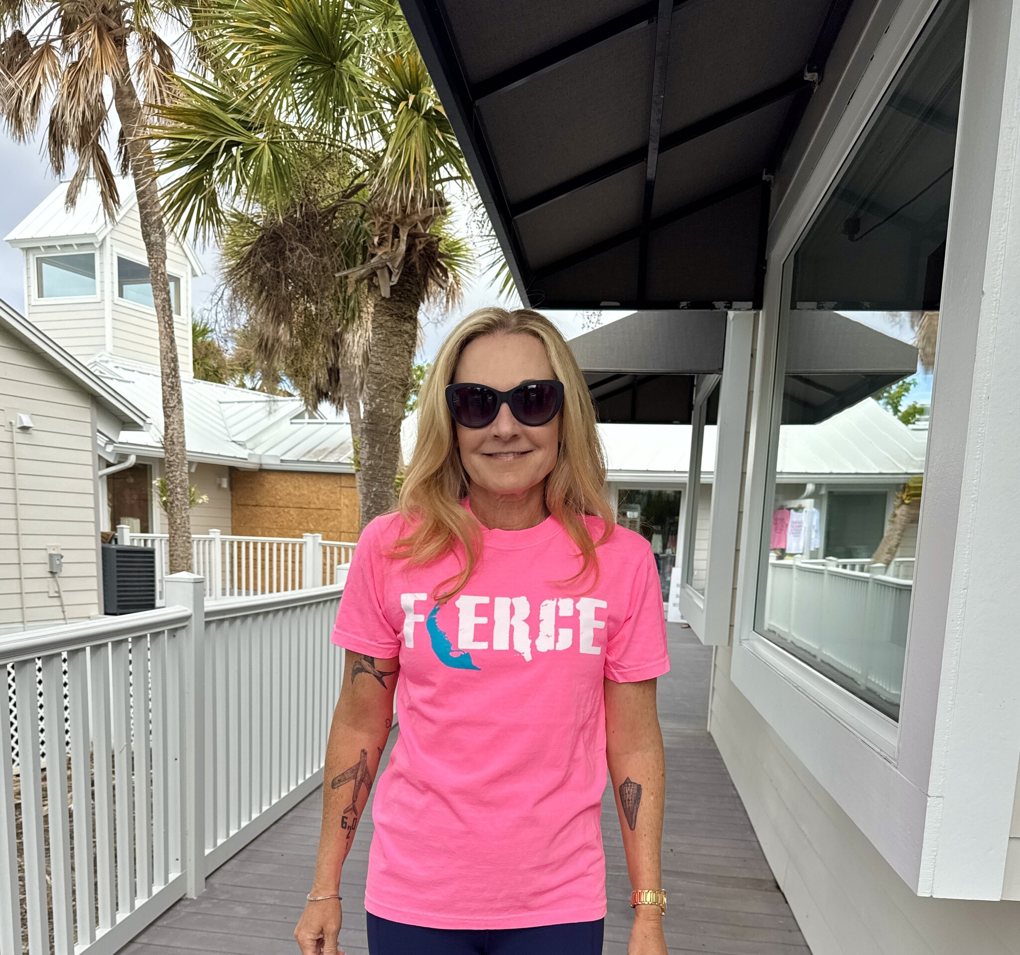 You are FIERCE! We designed this shirt in honor of Pinktober - Breast Cancer Awareness month but it's perfect all year long especially when you need a reminder that you can tackle any challenge you face! Even better, a portion of the proceeds will be donated to the PINK OUT organization of Sanibel and Captiva supporting women diagnosed with breast cancer. The "I" in Fierce is the map of our dear Sanibel and Captiva islands and on the back you will see the On Island logo. These comfy shirts are V-Neck in Ladies sizing and are true to size but we always recommend sizing up if you're not sure.
