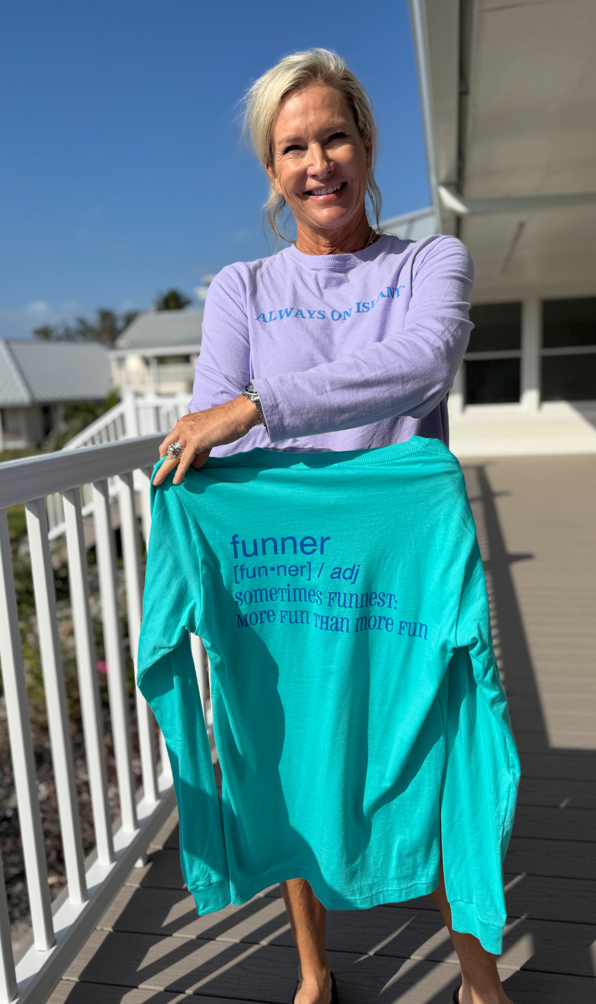 This super soft crew neck shirt is Funner than any other! It has the definition of Funner on the back and it's 100% cotton. It comes in regular adult sizes, but if between sizes, we recommend sizing up.