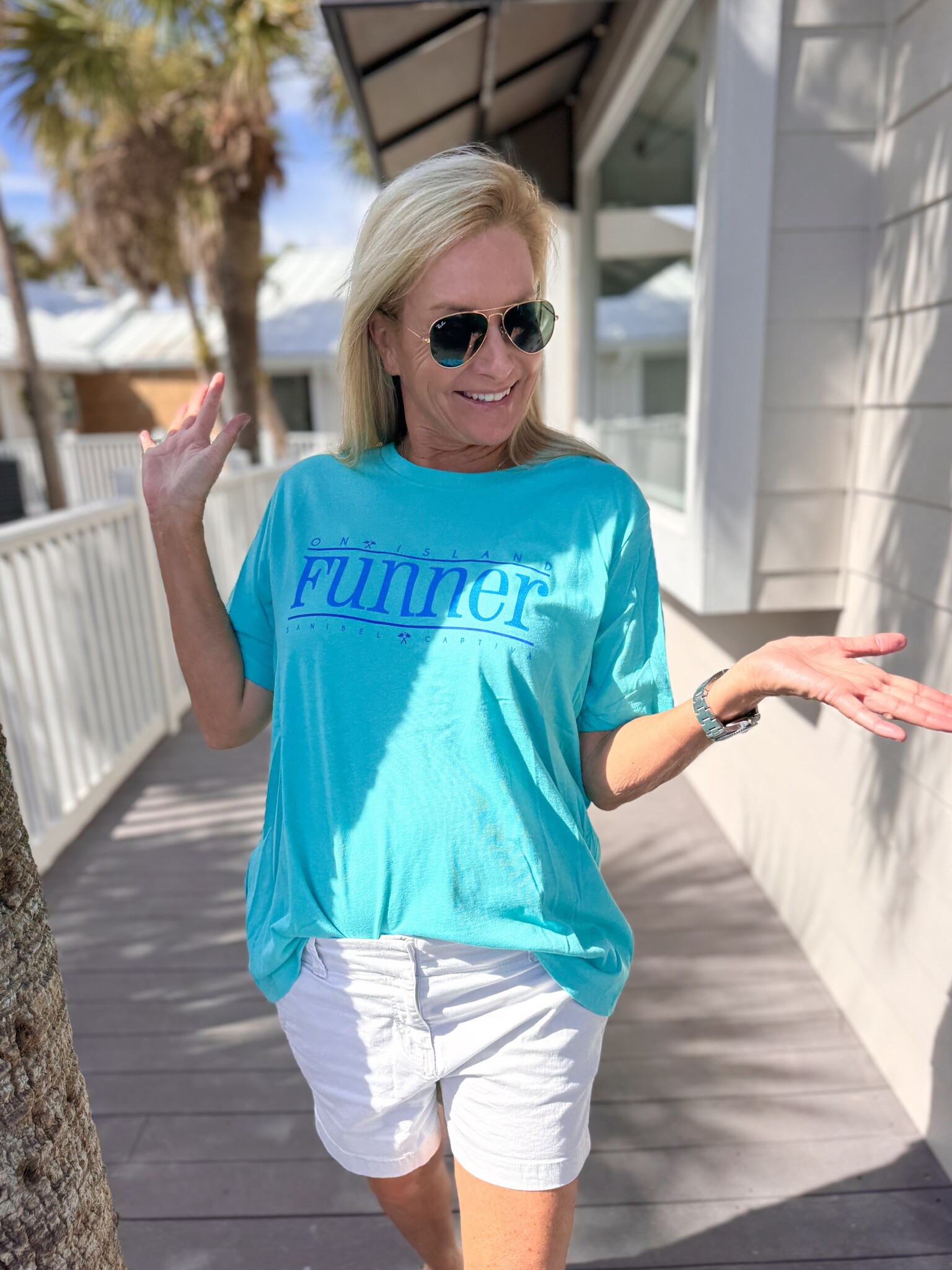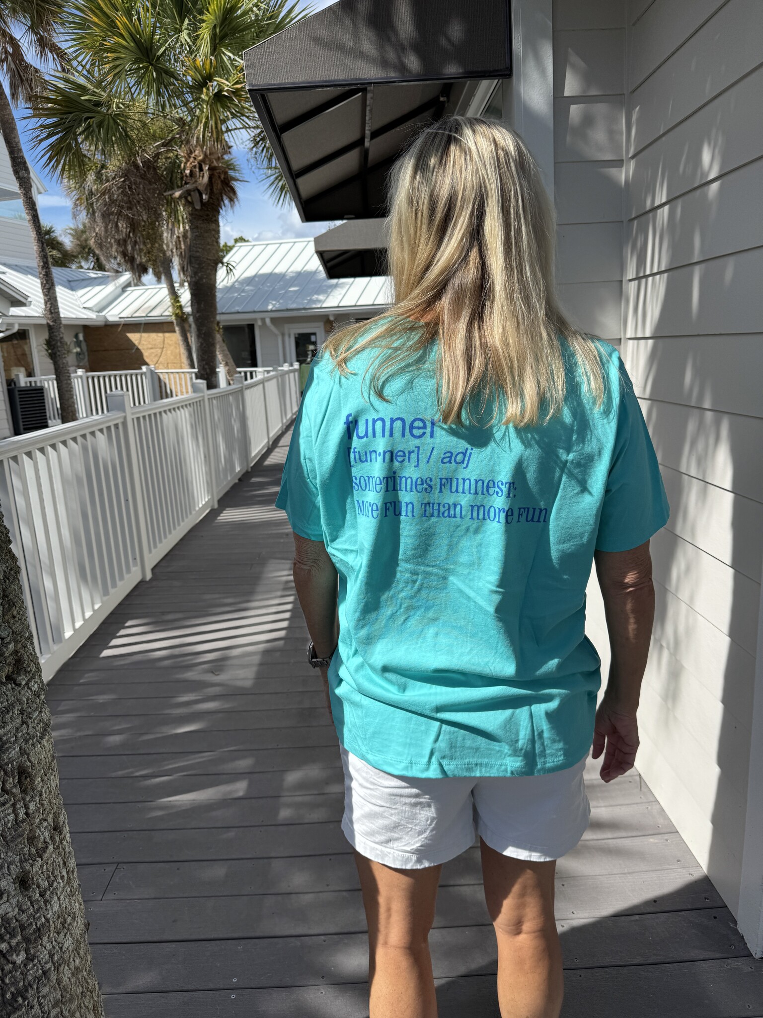 This super soft crew neck shirt is Funner than any other! It has the definition of Funner on the back and it's 100% cotton. It comes in regular adult sizes, but if between sizes, we recommend sizing up.