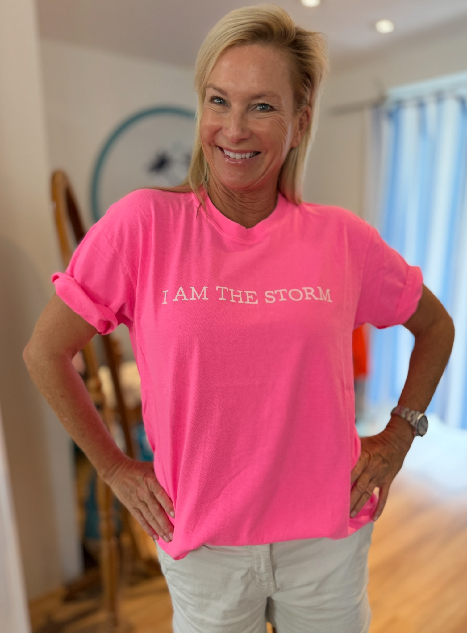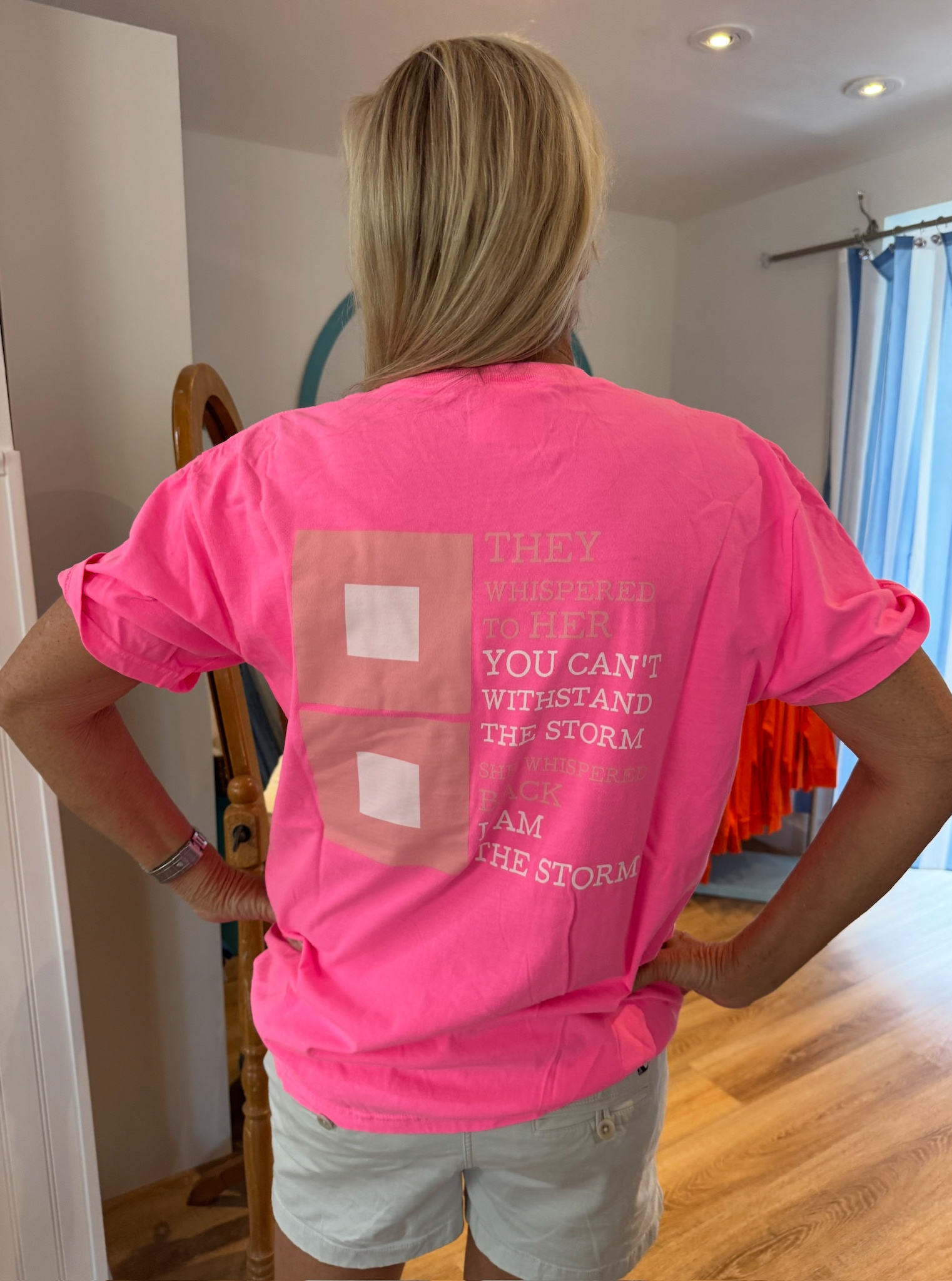 Express your inner power and in honor of Breast Cancer Awareness Month this shirt empowers those who wear it and see it. The nautical symbol for hurricane is the exclamation point for the text. This 100% cotton shirt fits true to size.