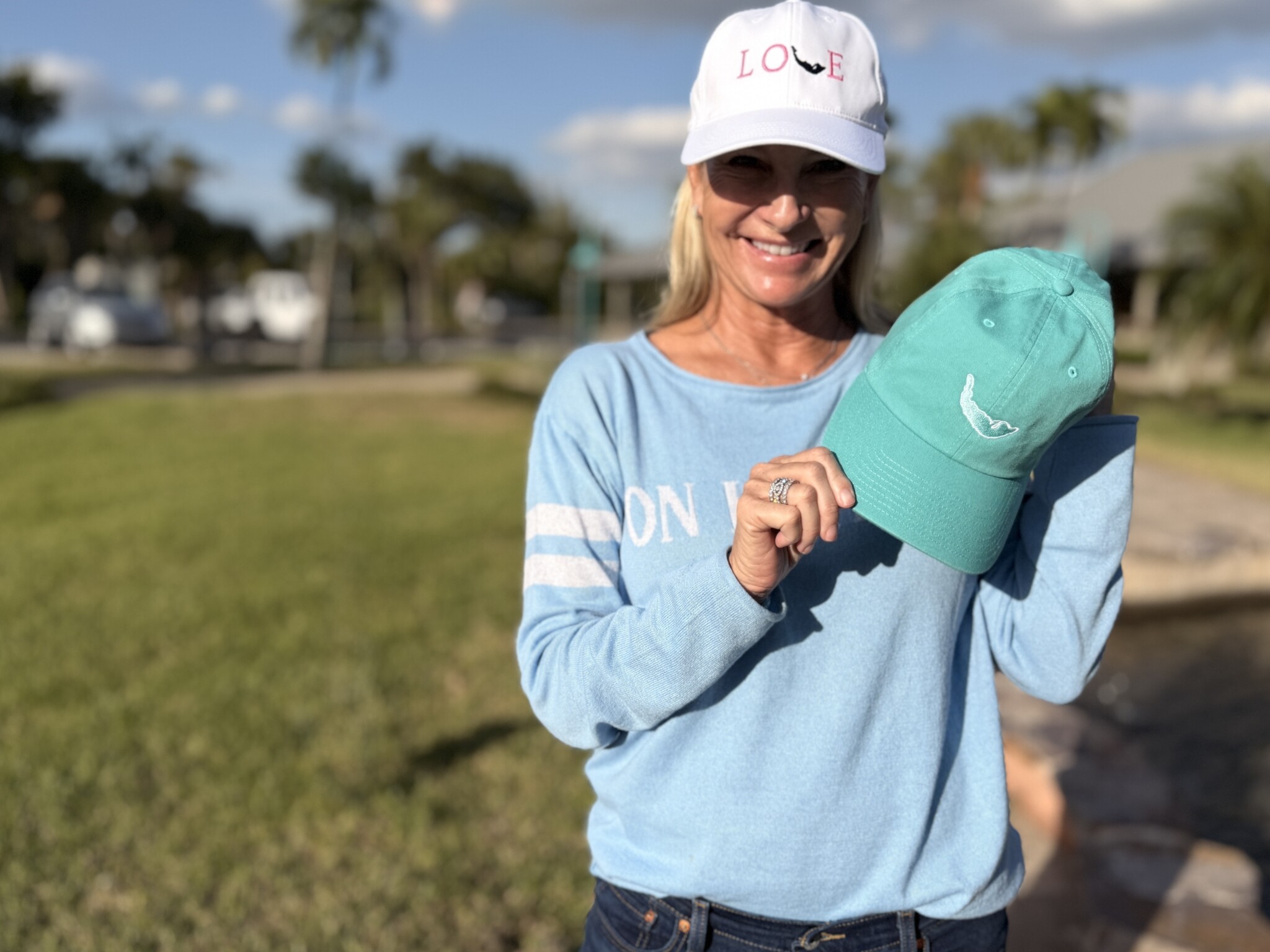 The quintessential and original On Island hat! It features the map of Sanibel and Captiva on the front. On the back it says On Island Sanibel with our logo arching over the closure. This is a washed pigment dyed twill hat with an adjustable slider closure