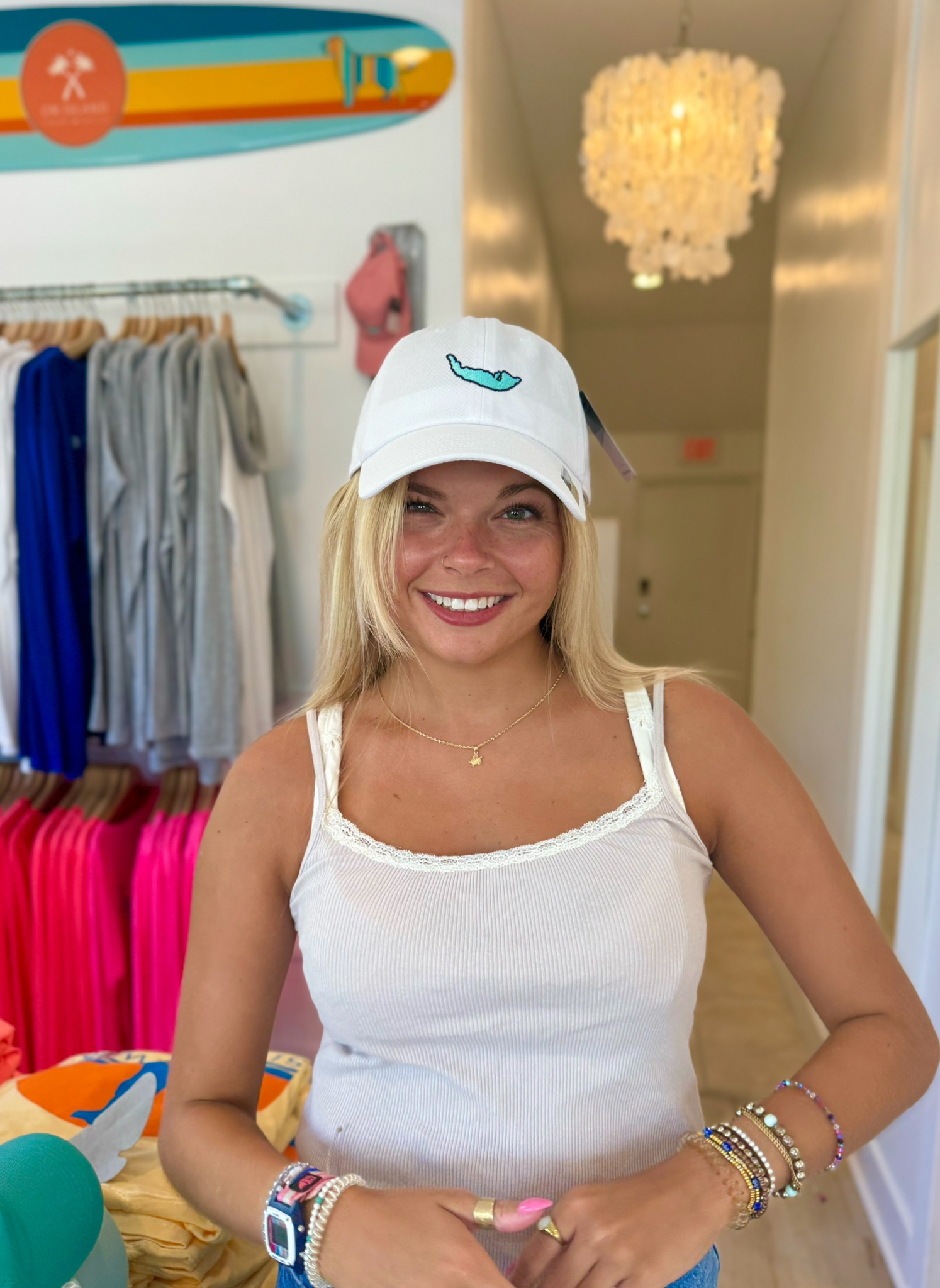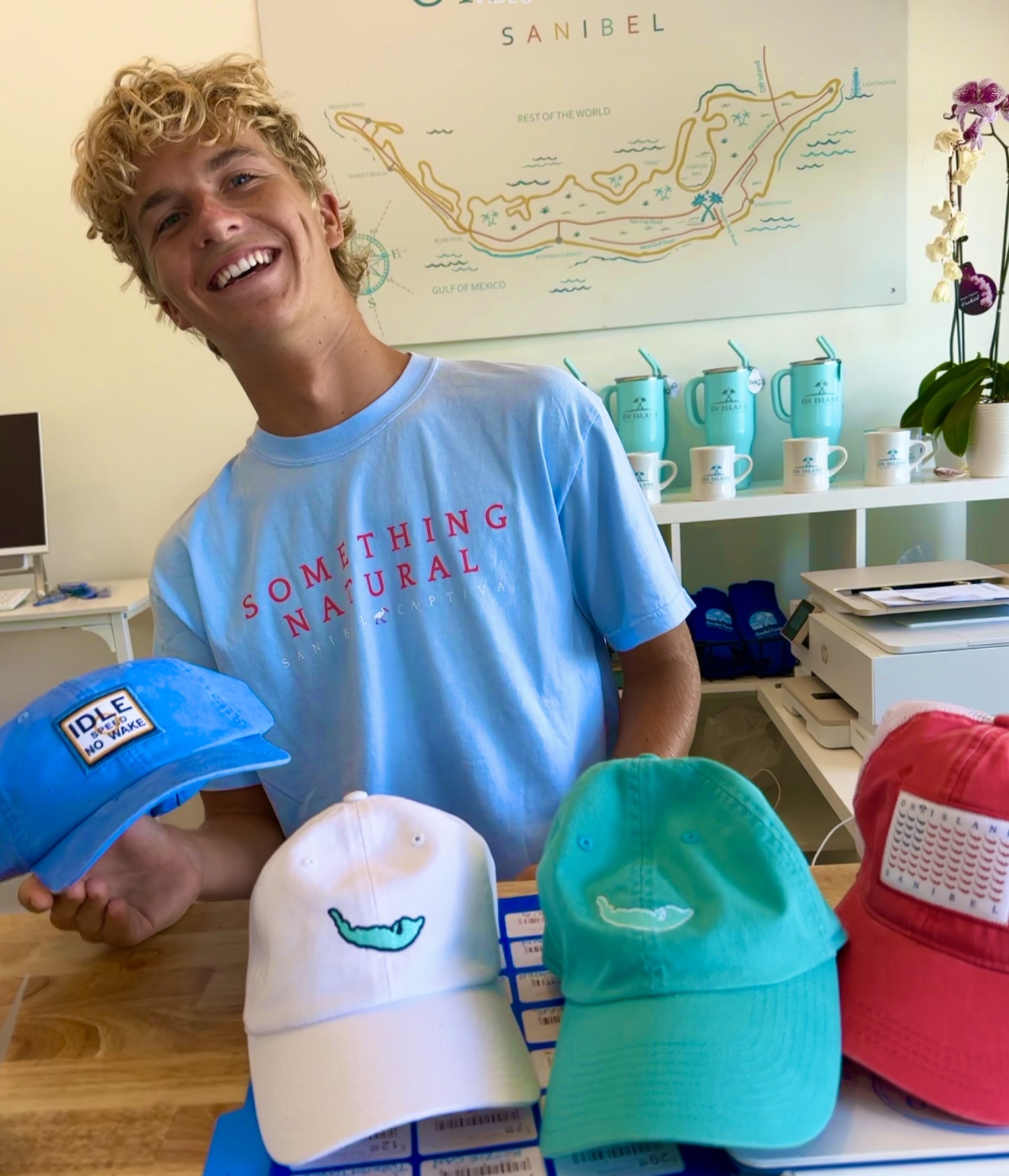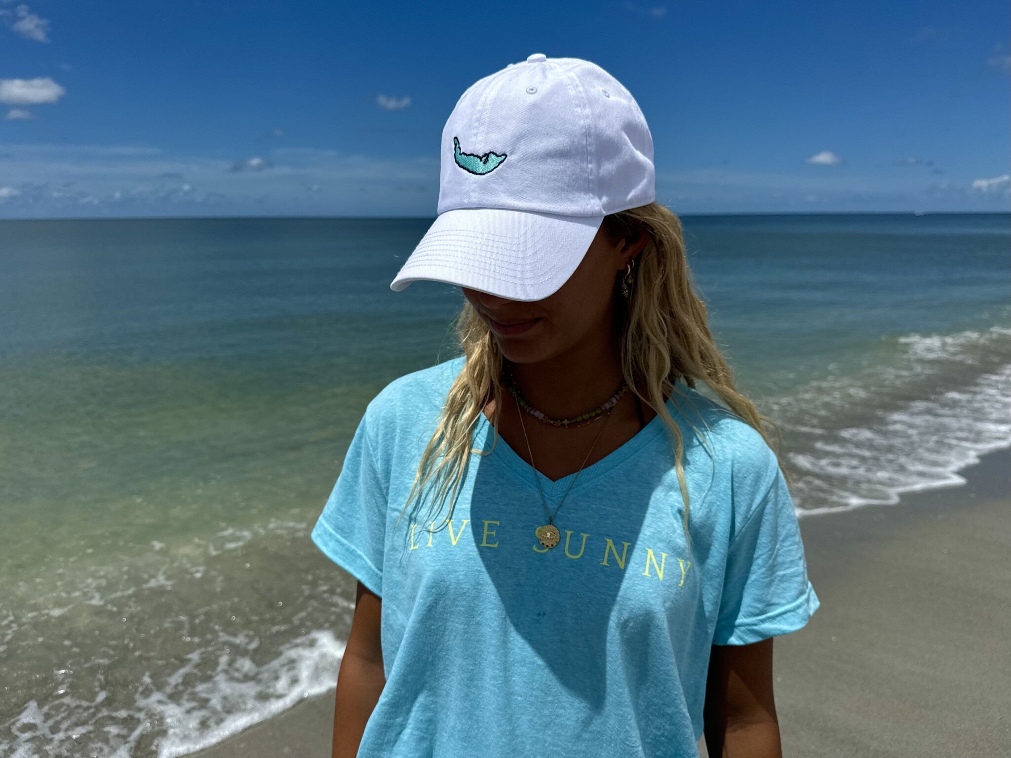 The quintessential and original On Island hat! It features the map of Sanibel and Captiva on the front. On the back it says On Island Sanibel with our logo arching over the closure. This is a washed pigment dyed twill hat with an adjustable slider closure
