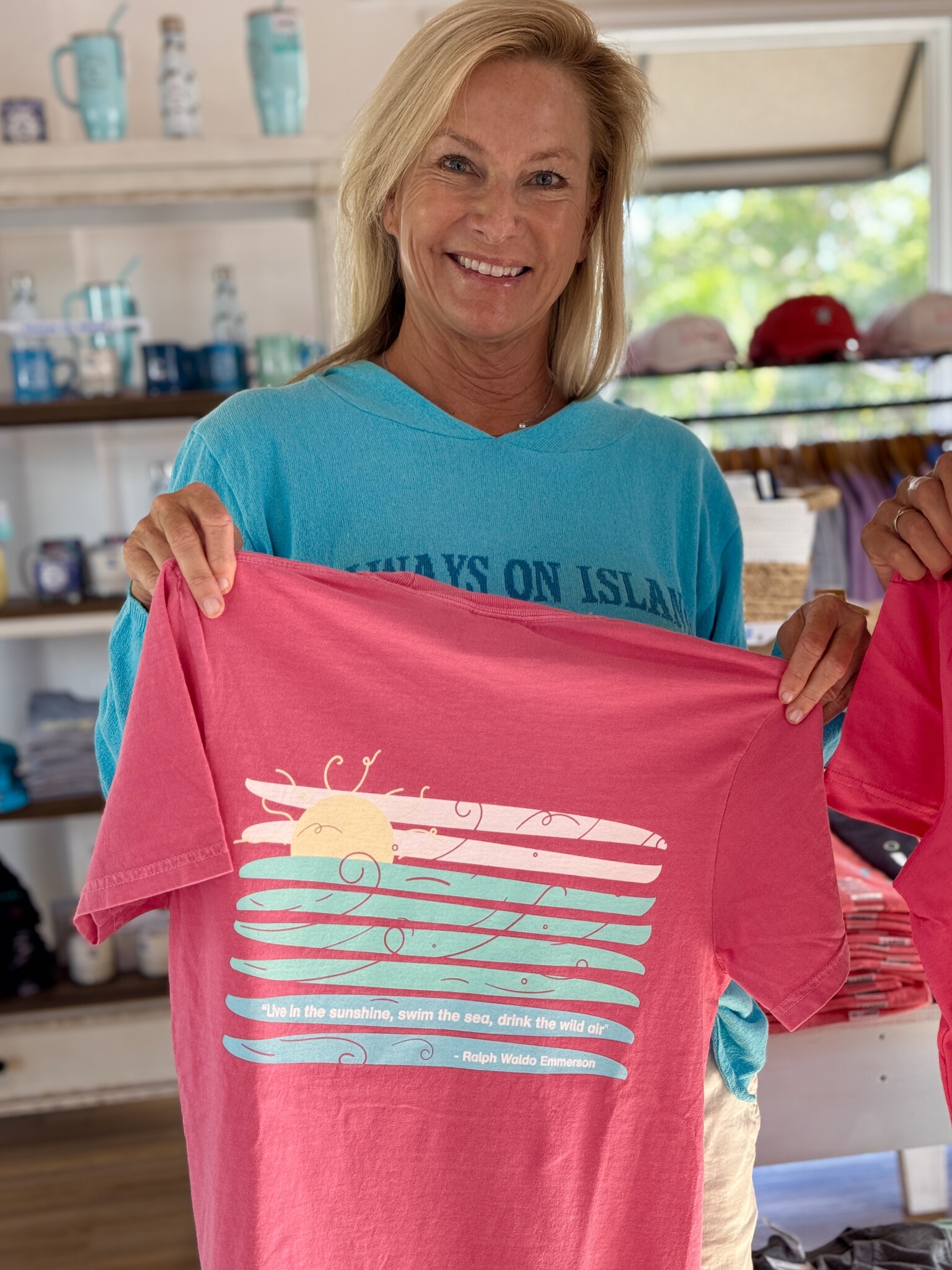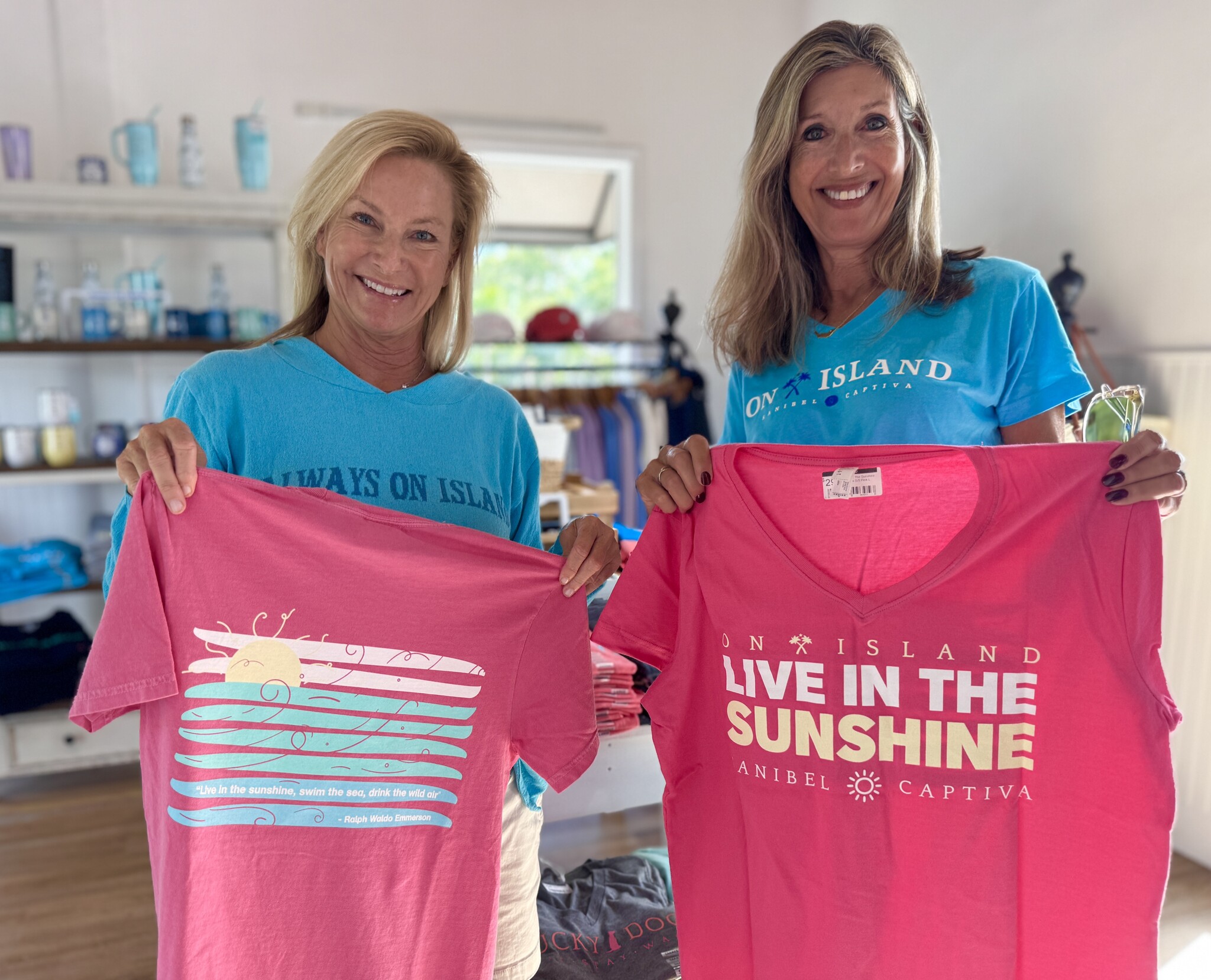 This shirt will remind you and others to live in the sunshine! The back of the shirt is one of our favorite quotes that resonates with people who love Sanibel and Captiva. "Live in the sunshine, swim the sea, drink the wild air", by Ralph Waldo Emerson, is a great quote to live by.