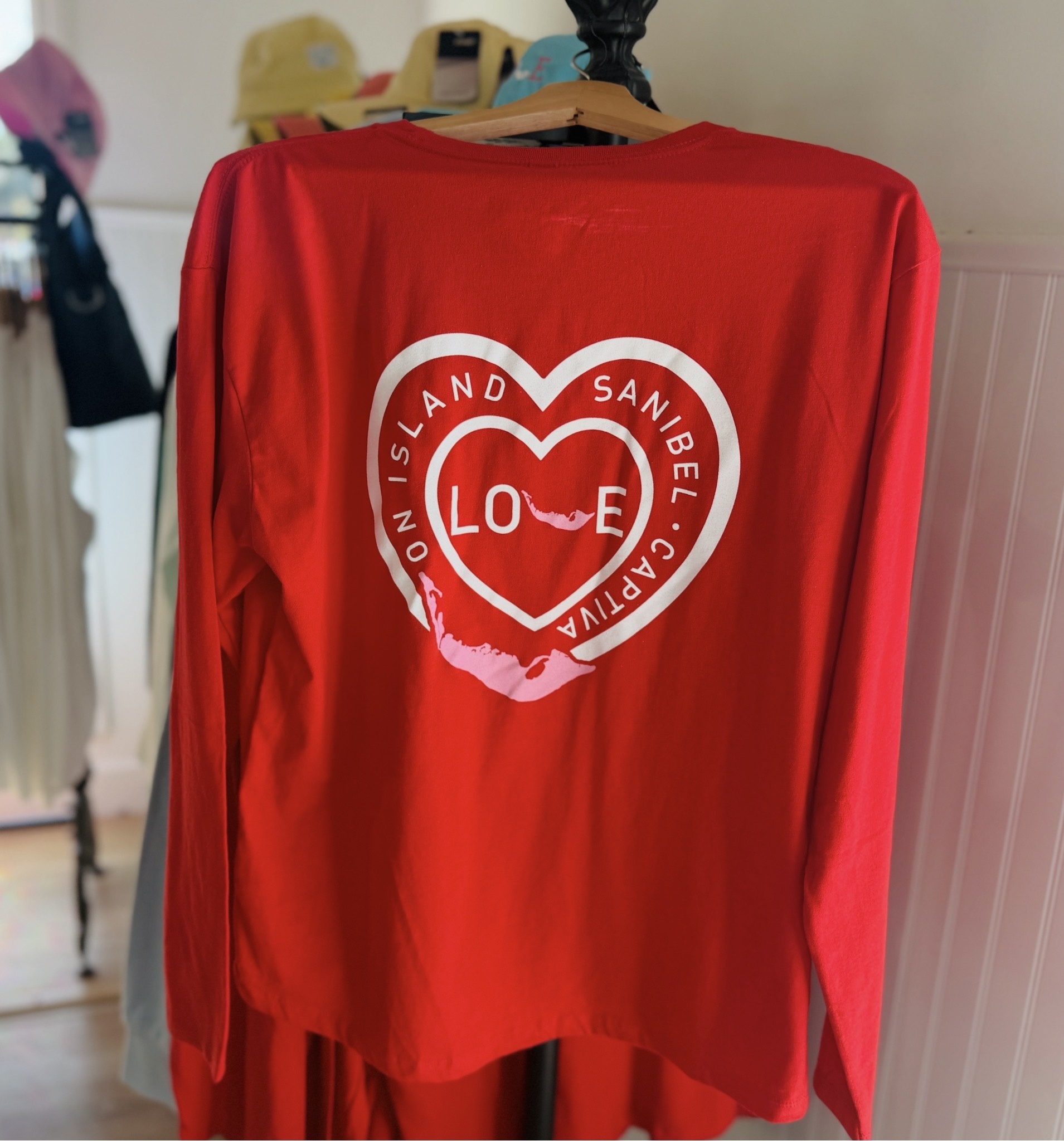 Not just for Valentine's Day! Show your LOVE and support for Sanibel and Captiva with our LOVE tee that you will LOVE! The "v" is a map of Sanibel and Captiva. This 100% super soft sueded cotton tee has a relaxed feminine fit and fits true to size.