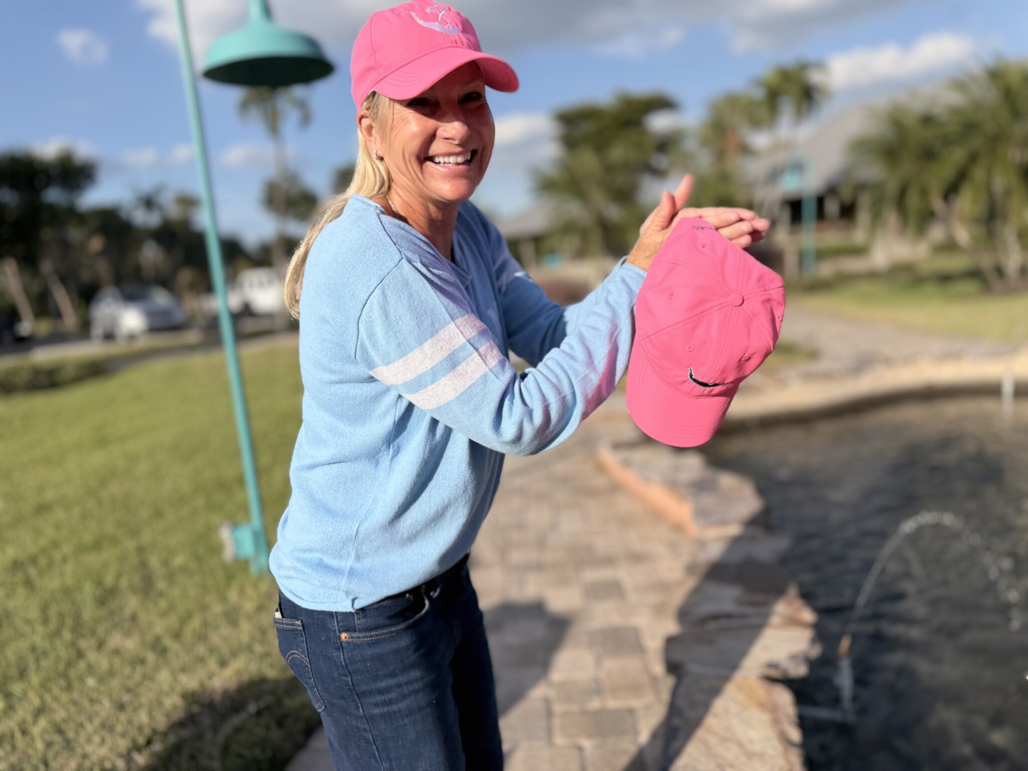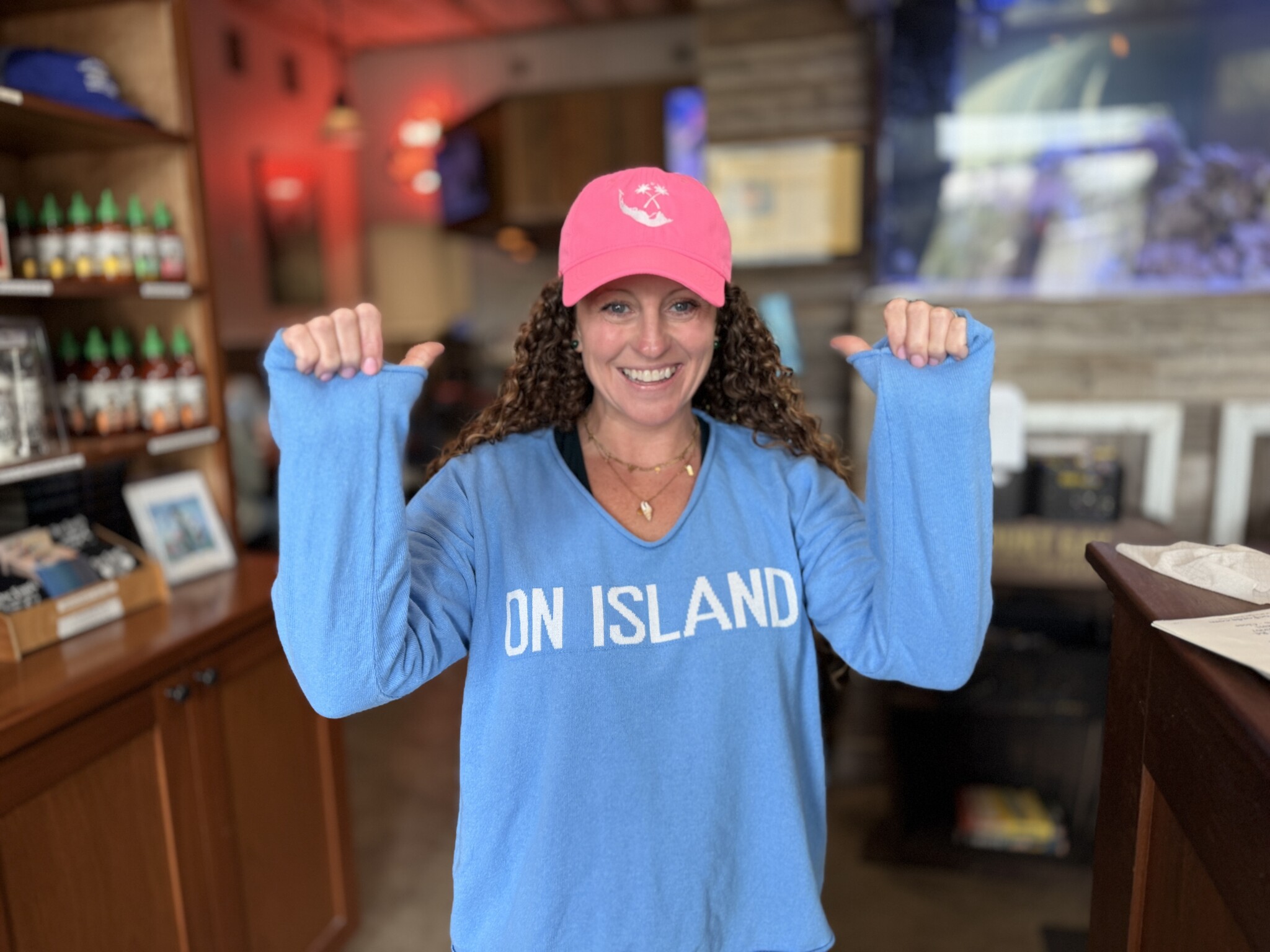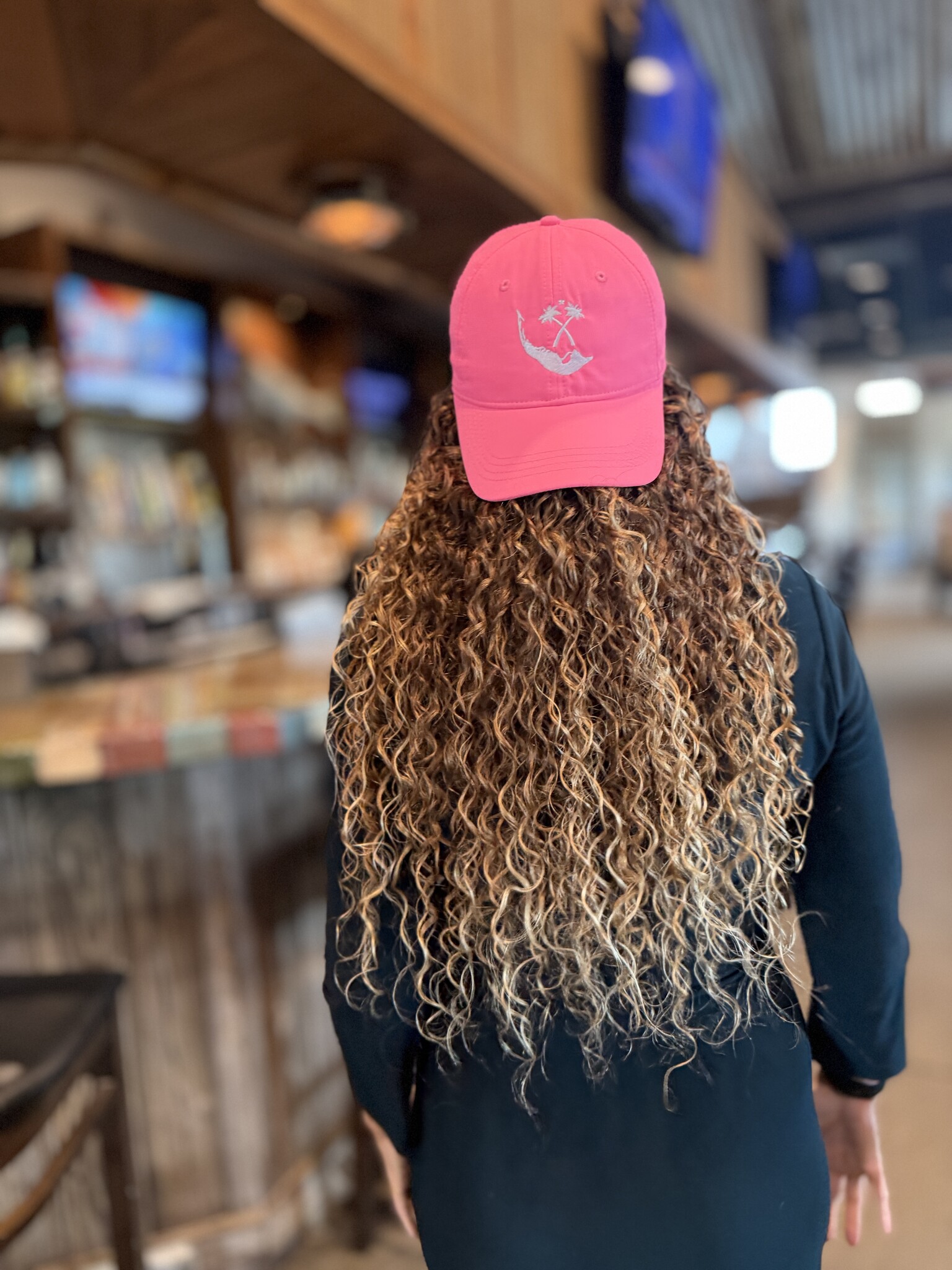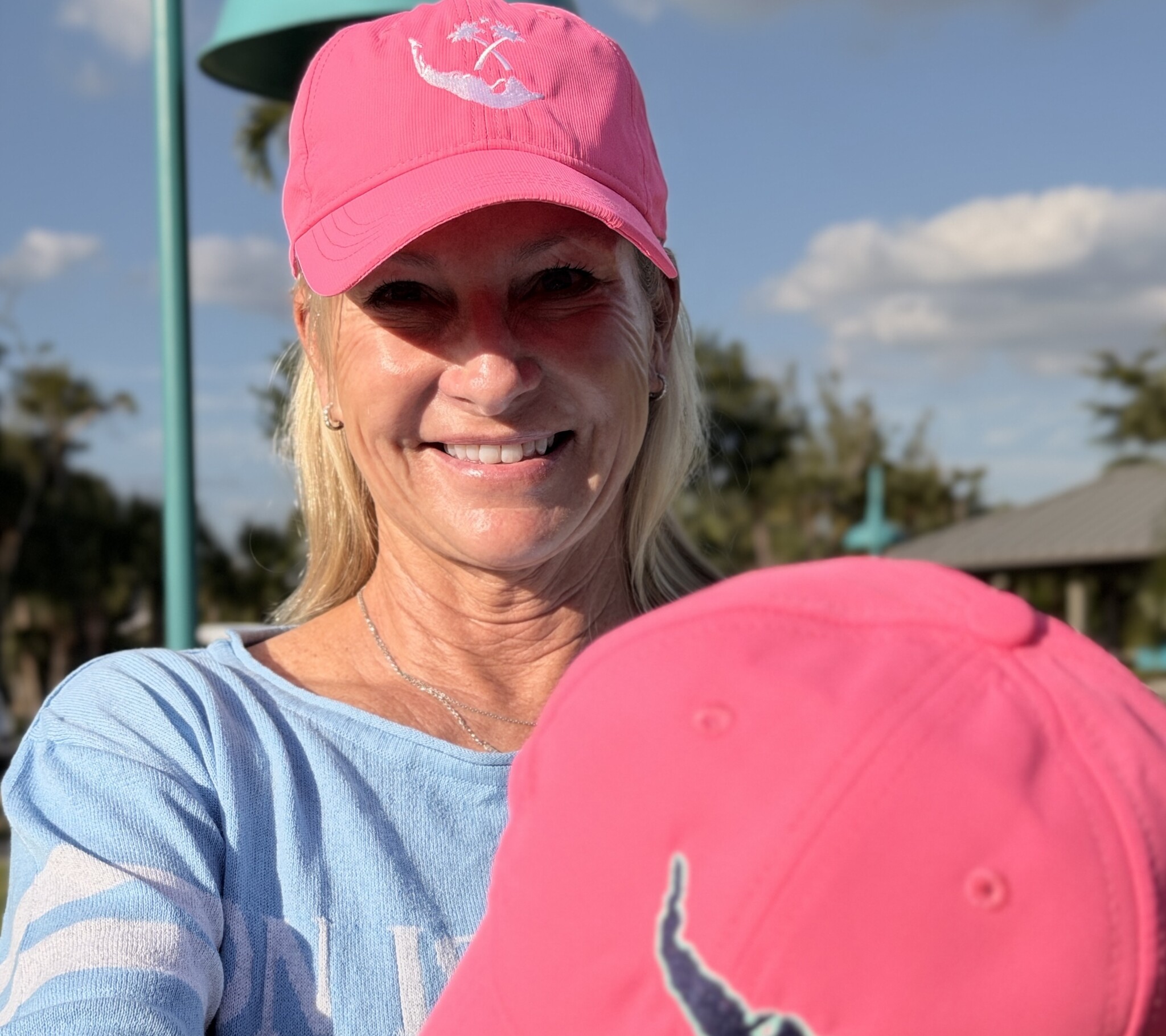 The Map of Sanibel & Captiva and our Palm Tree Logo on the front. On Island Sanibel on the back. This is a Performance Hat Ladies Fit with an adjustable slider closure.