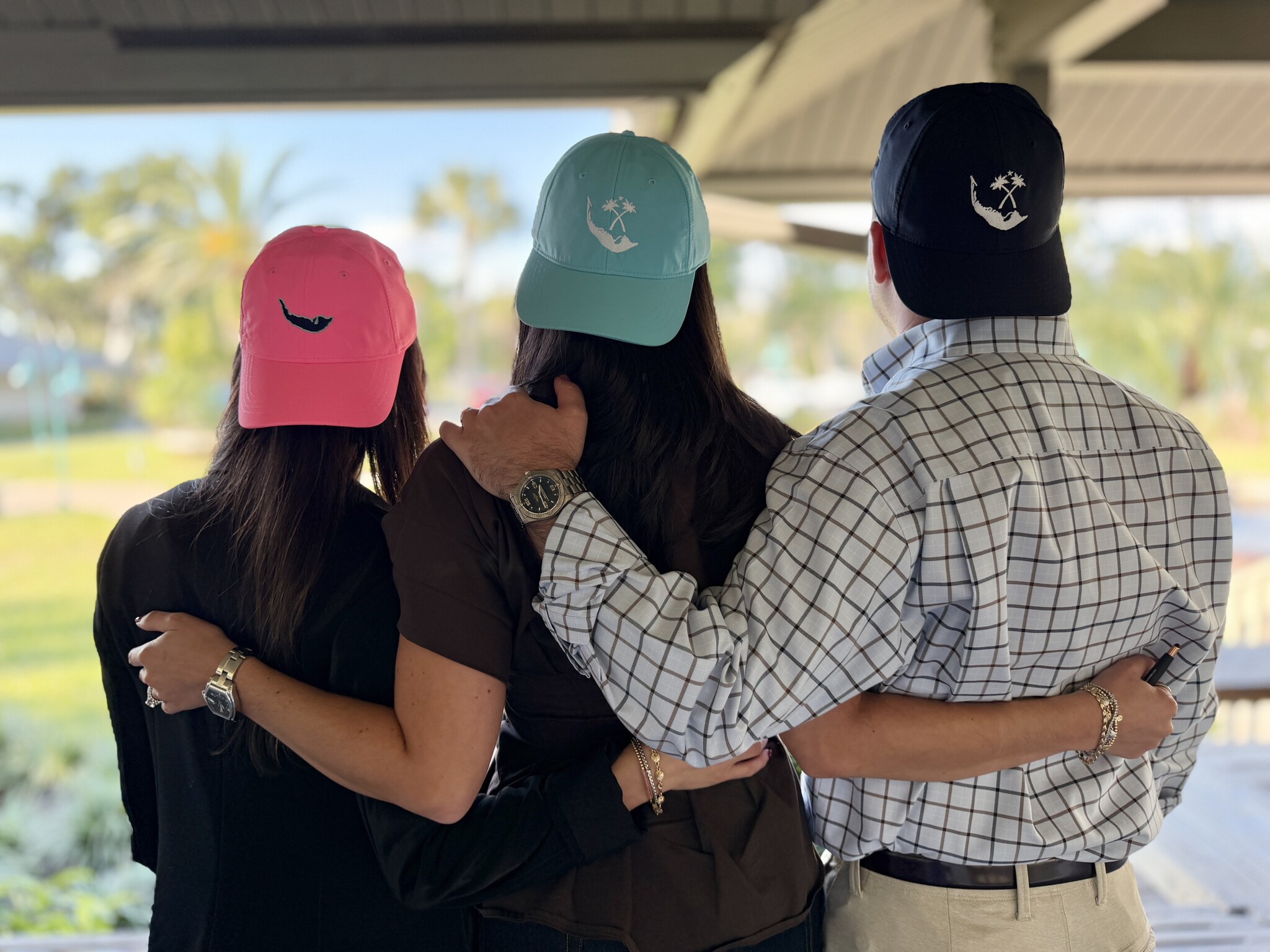 The Map of Sanibel & Captiva and our Palm Tree Logo on the front. On Island Sanibel on the back. This is a Performance Hat Ladies Fit with an adjustable slider closure.