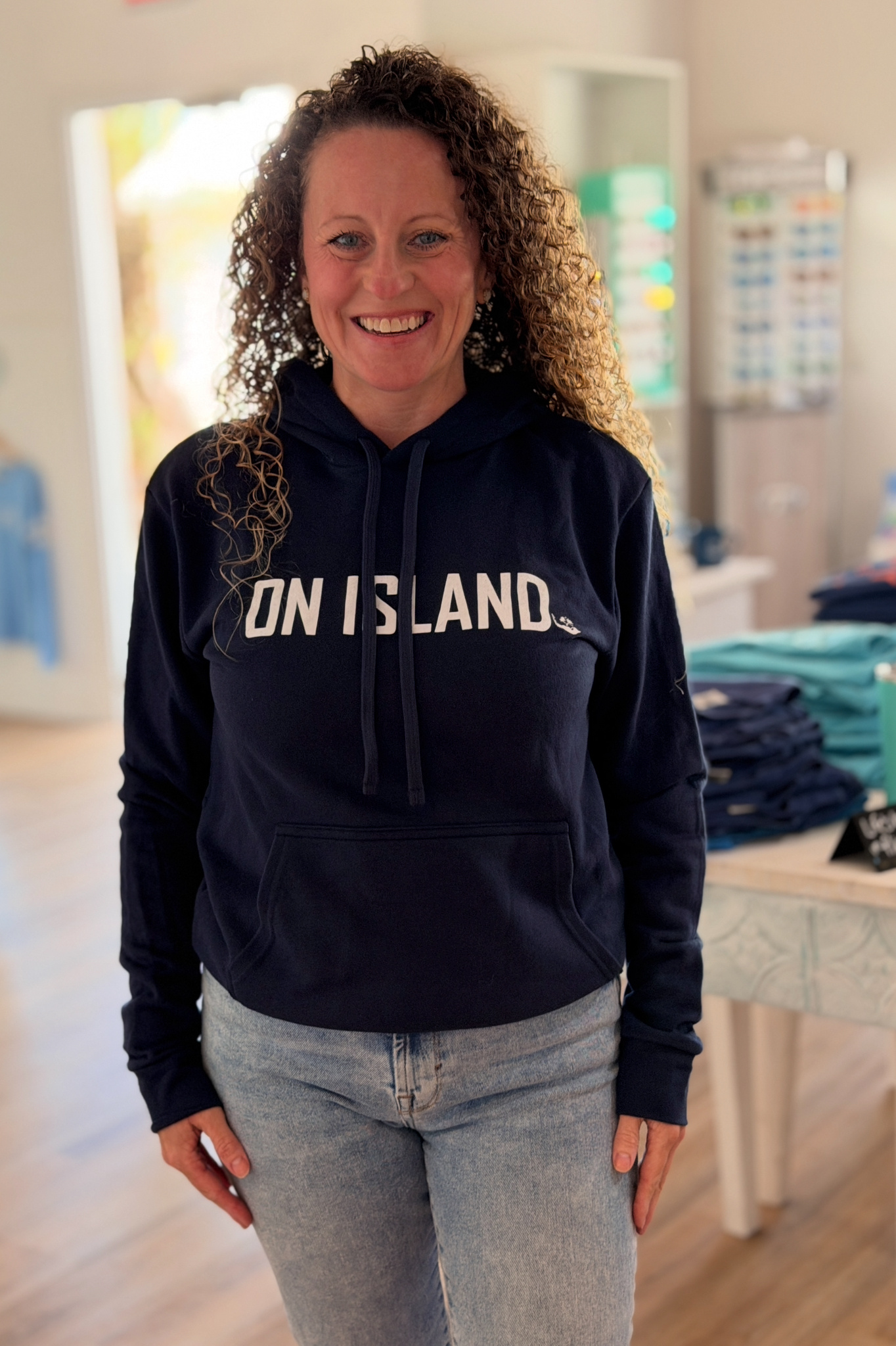 On Island Block Sueded Hooded Sweatshirt Unisex - Navy