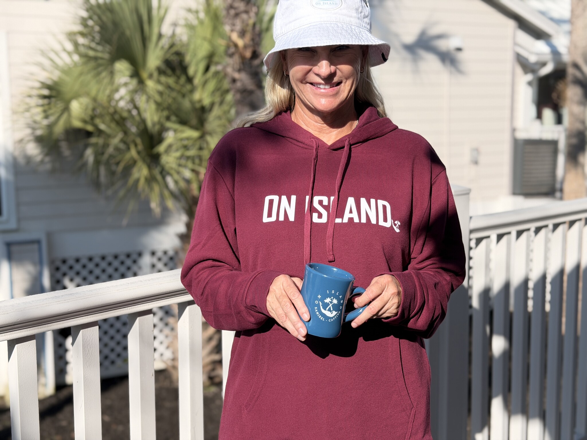 On Island Block Sueded Hooded Sweatshirt Unisex - Wine
