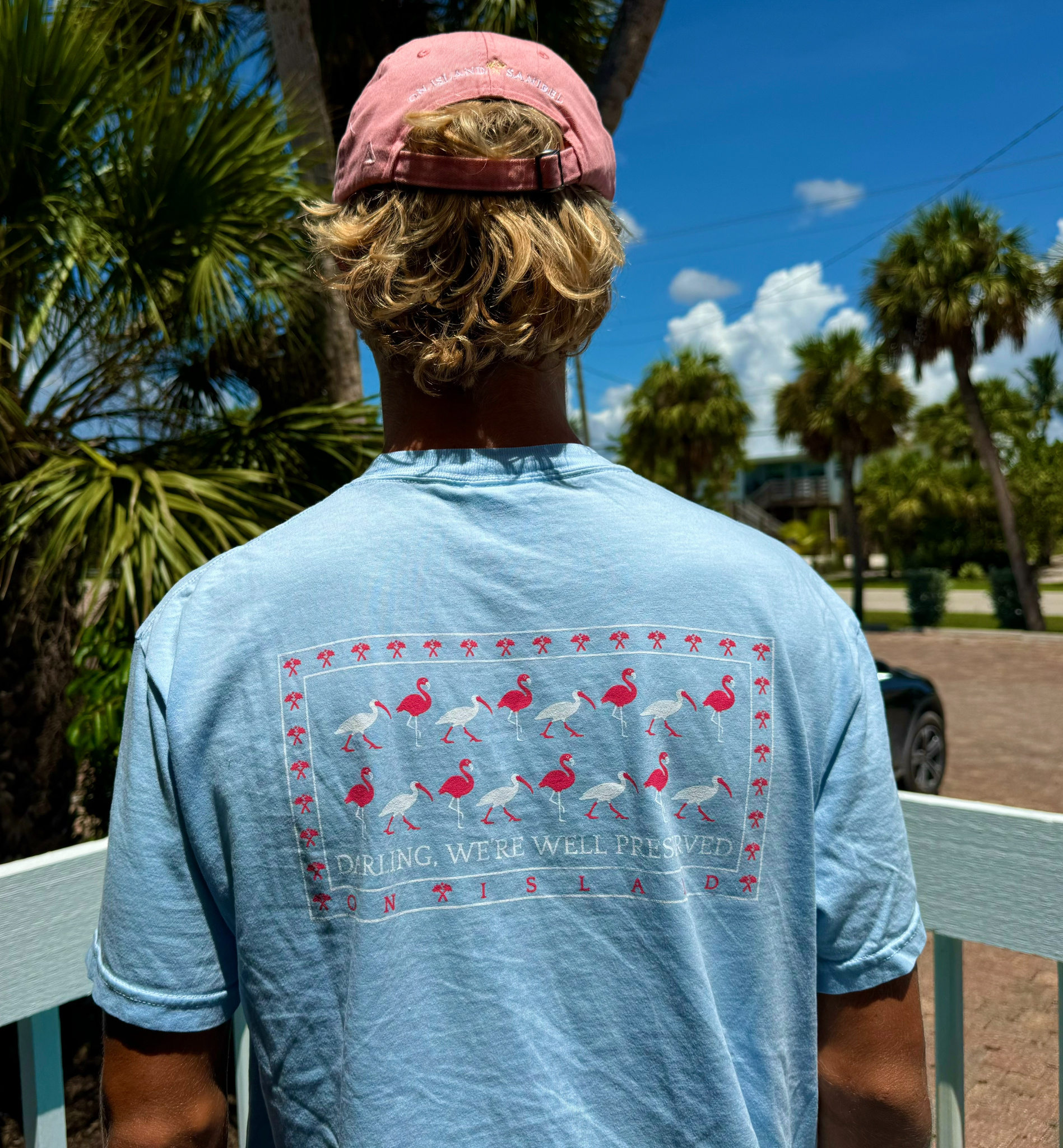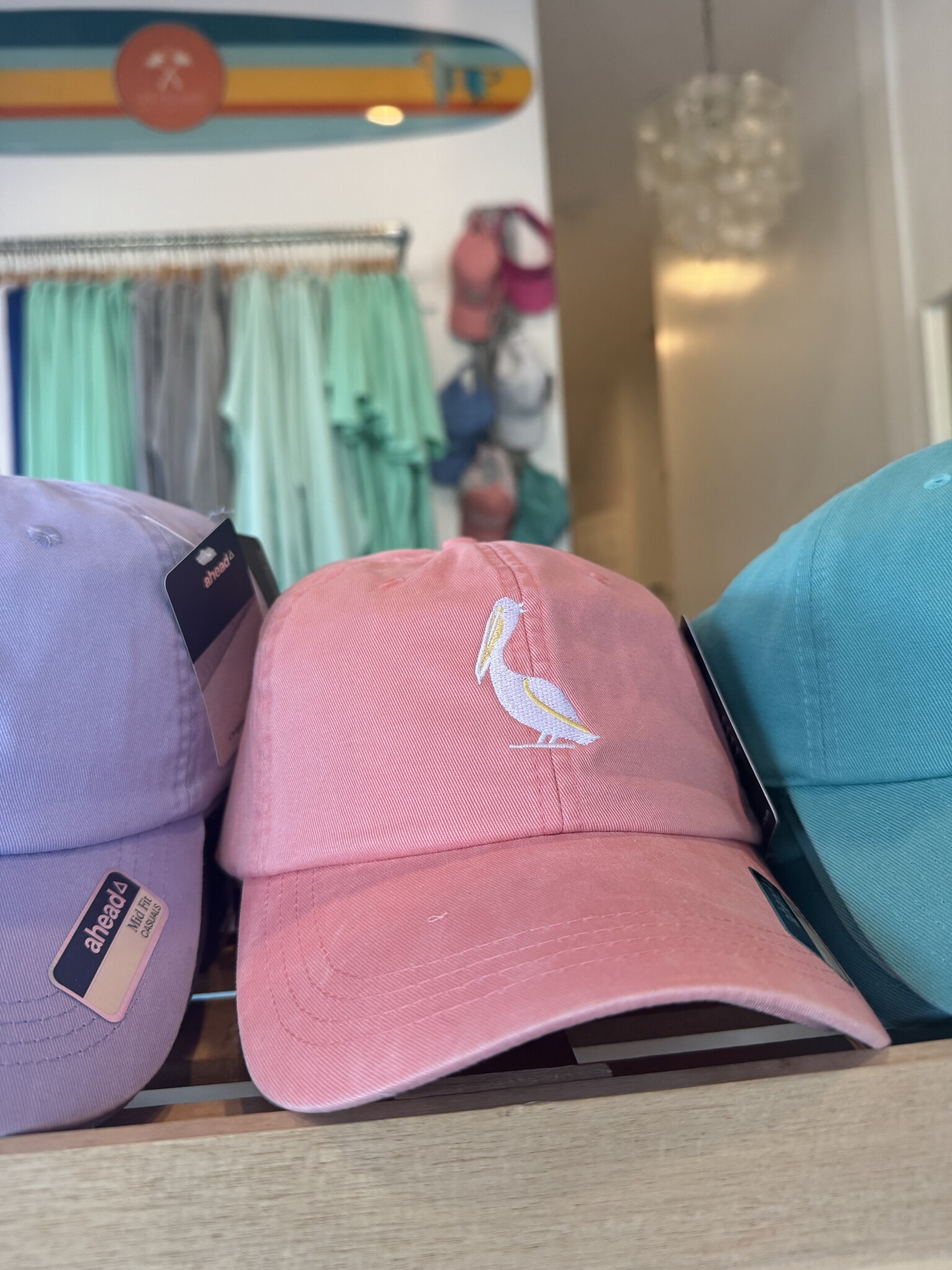 Boy do we love our pelicans so we love this hat! It features a pelican on the front with "On Island Sanibel" arching over the closure on the back. It is a one size fits all hat with a strap on the back for adjustment.