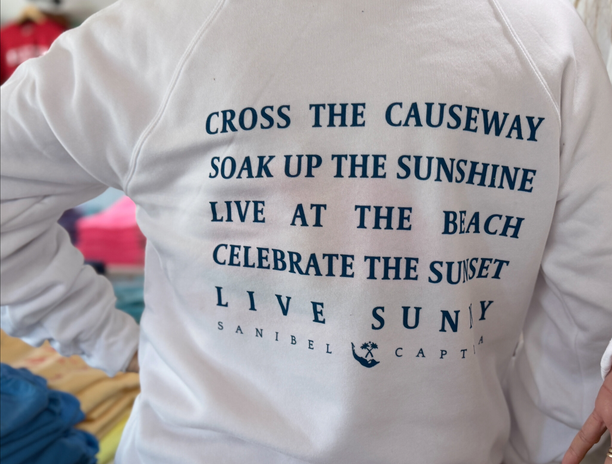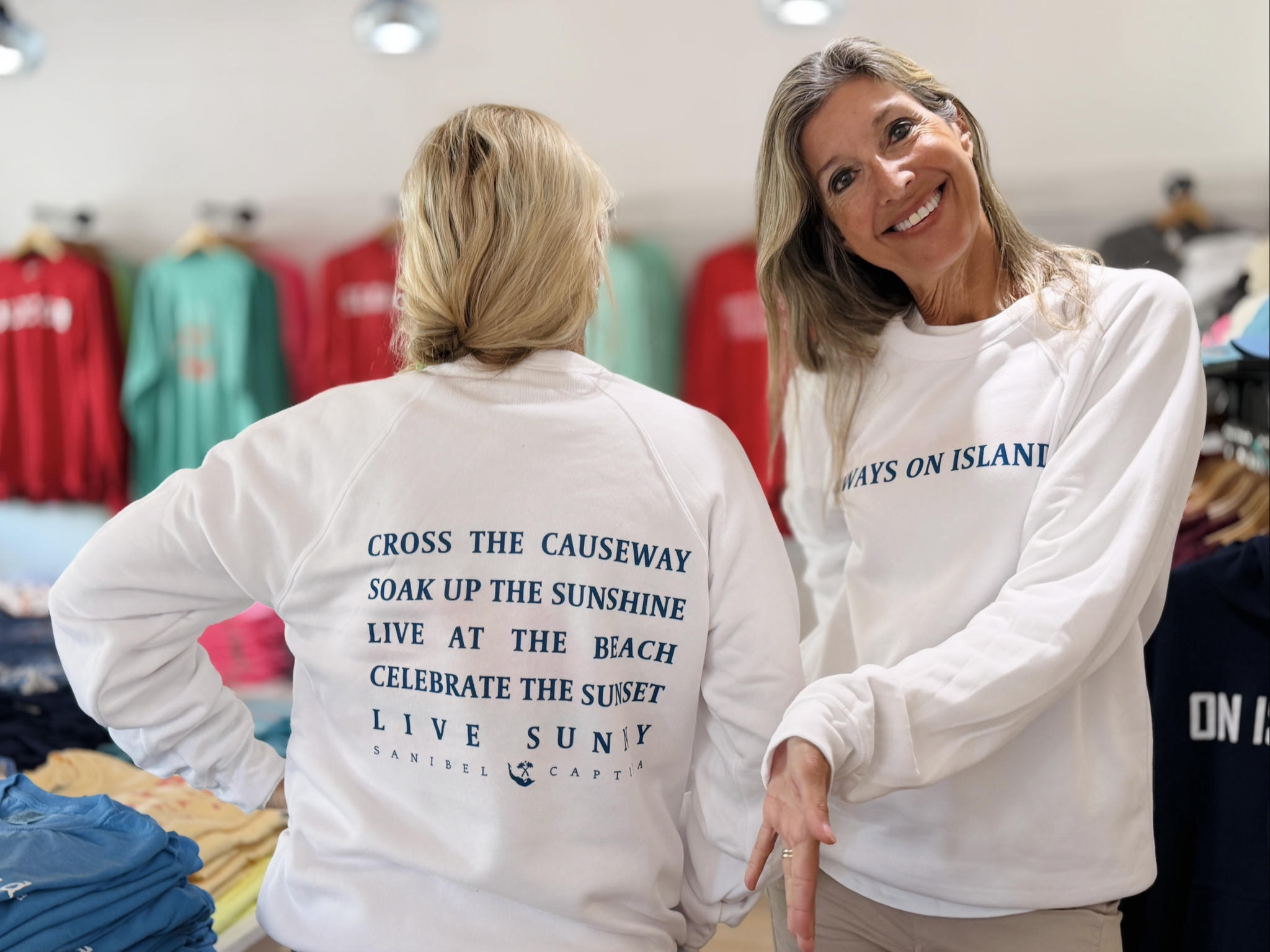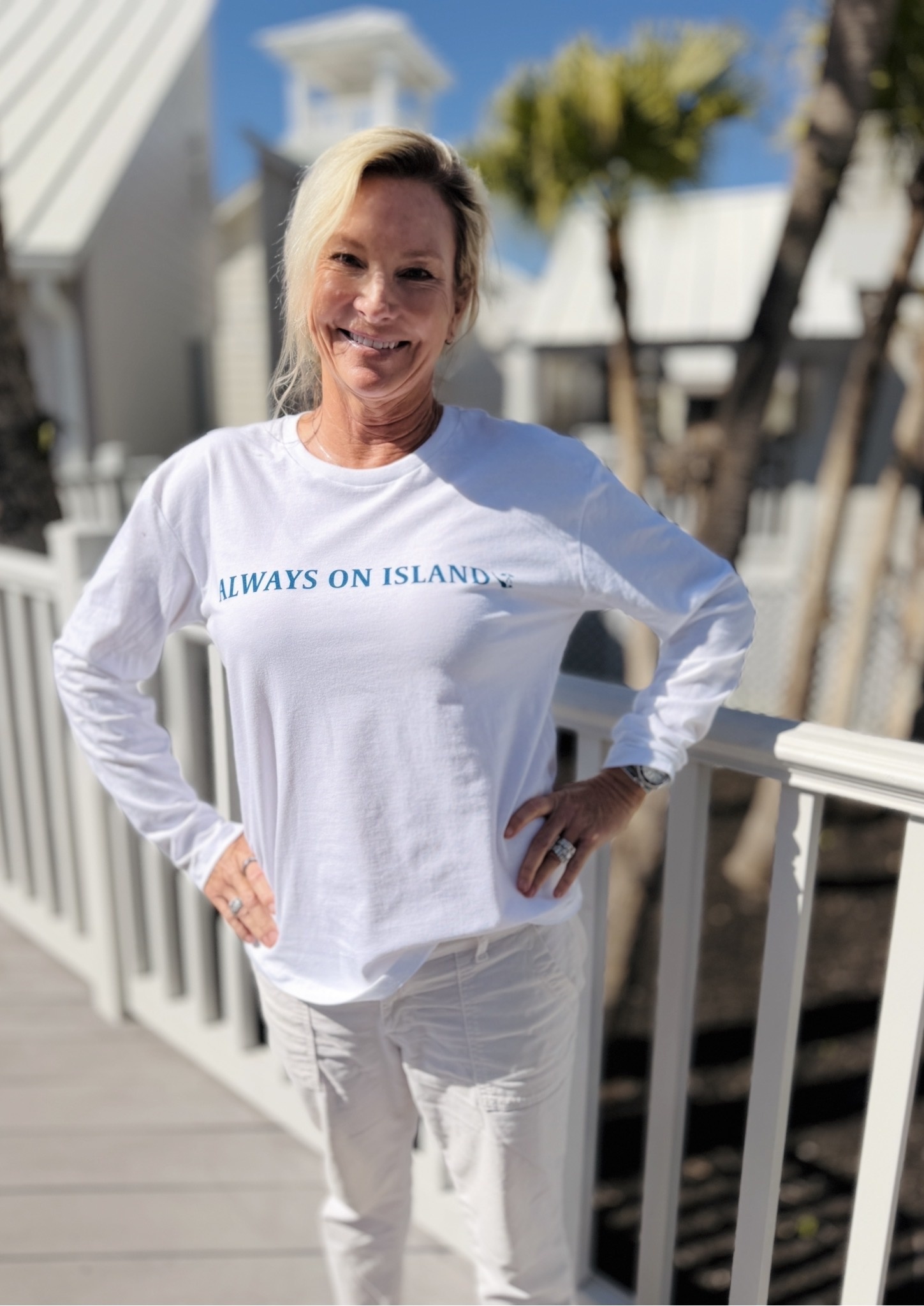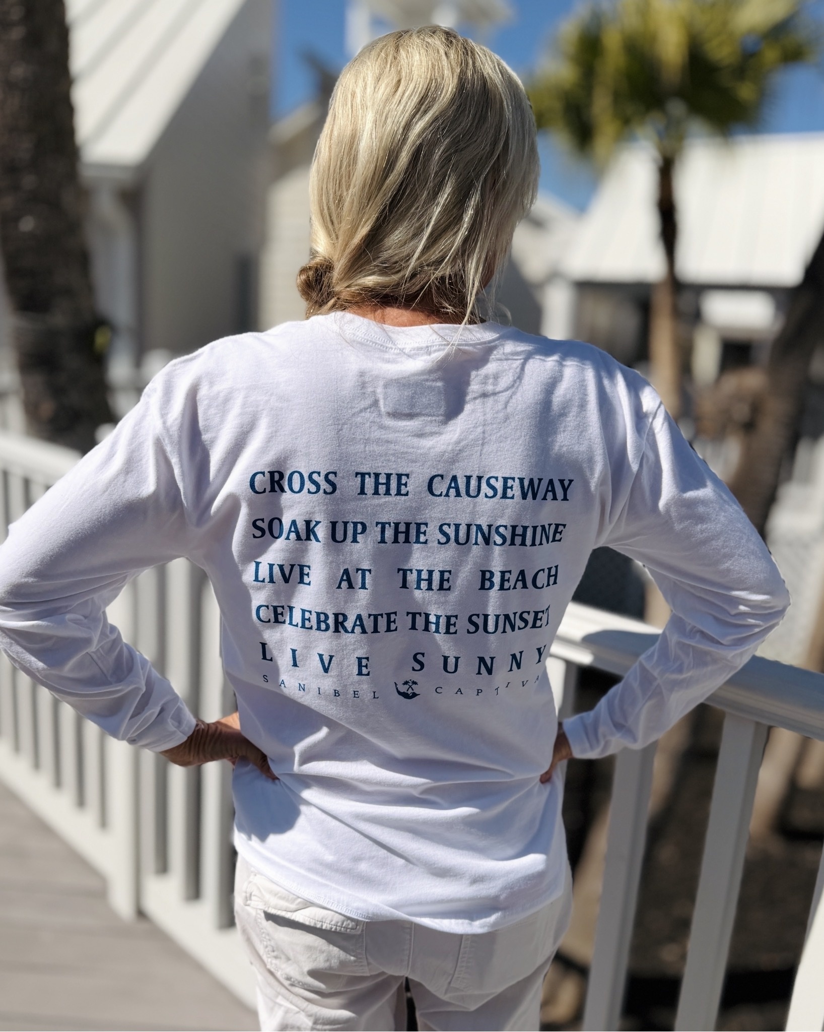 Once you cross the causeway, your heart will always stay on island! This tee captures what it means to be on island in five short statements. The list appears on a super soft 100% ring spun cotton ladies long sleeve tee. This shirt has a relaxed feminine fit with a shallow scoop neck. It fits true to size but you'll never regret sizing up with a graphic tee.