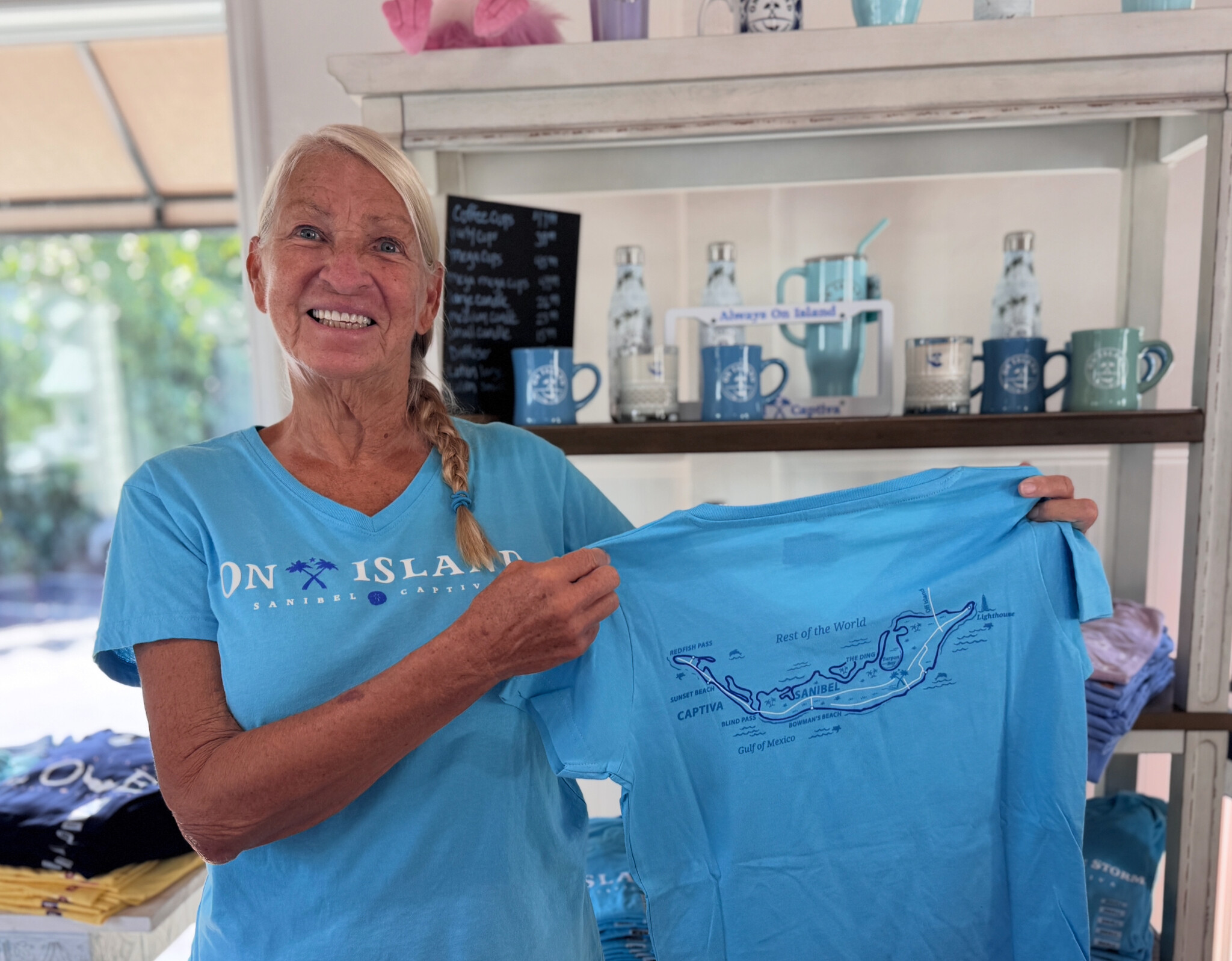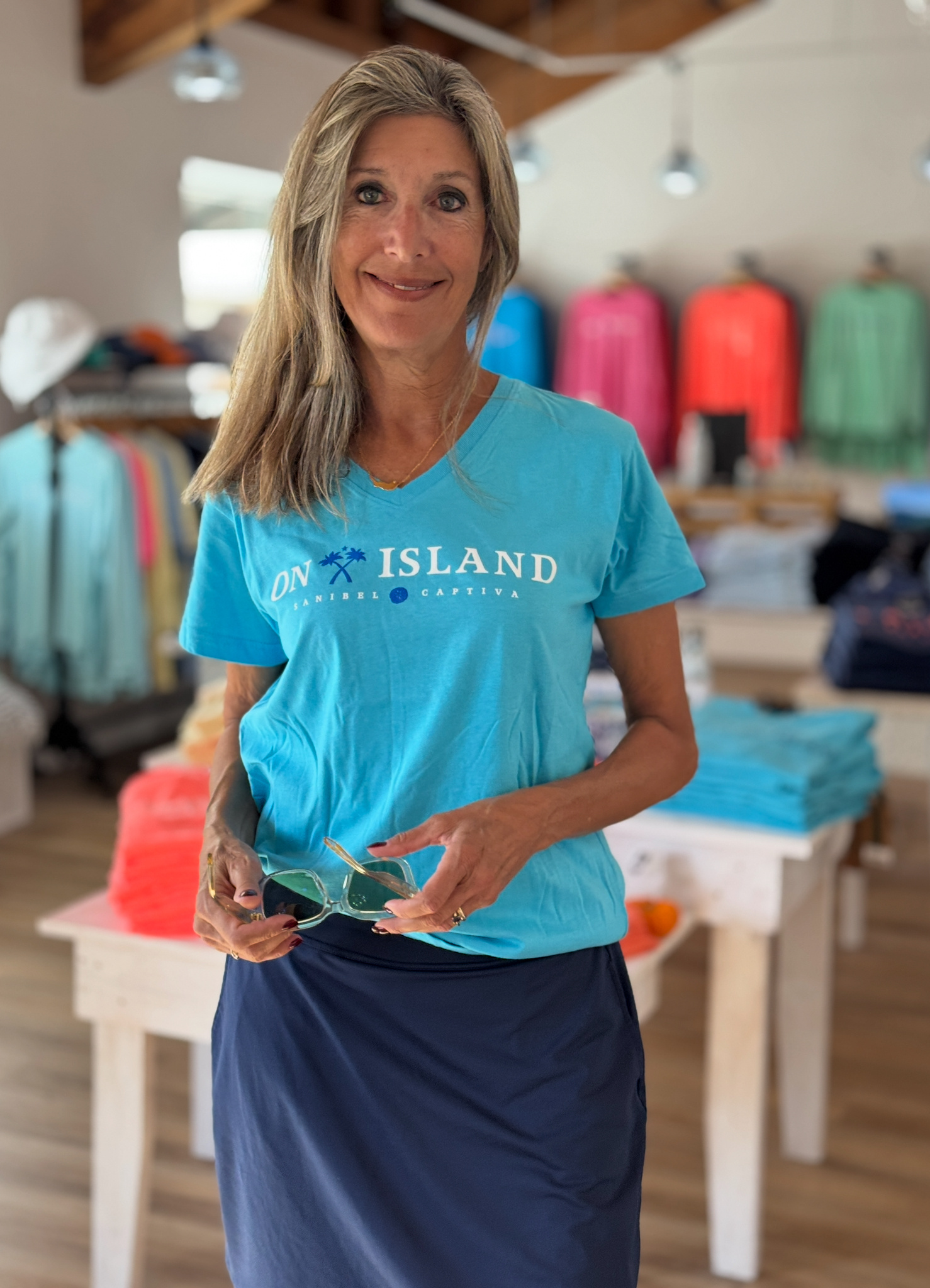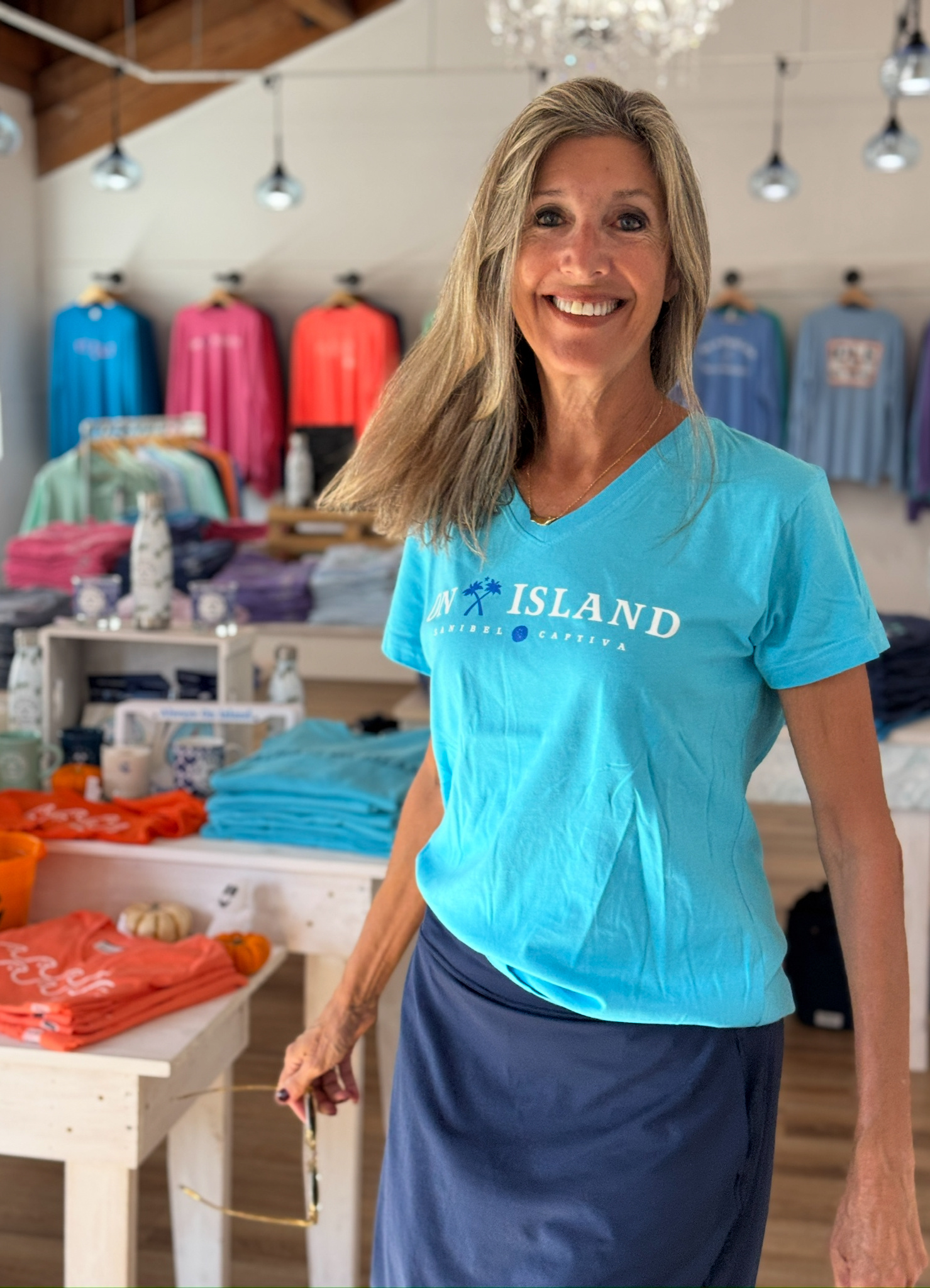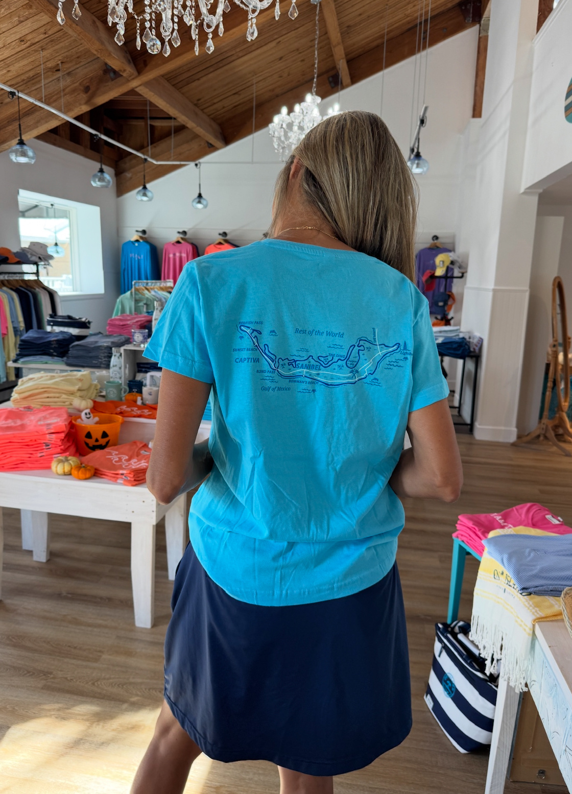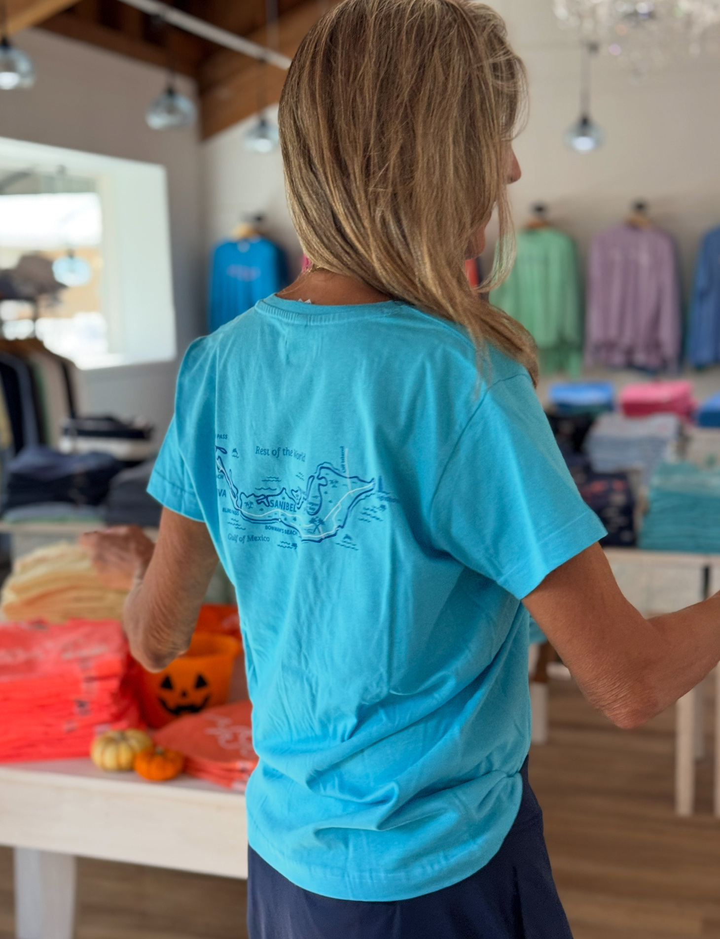 A detailed map of Sanibel and Captiva adorns the back of this super soft, short sleeve shirt. The map highlights some favorite island locations. It has a loose feminine fit with slightly capped sleeves and fits true to size. You'll feel like you're on island when you wear it!